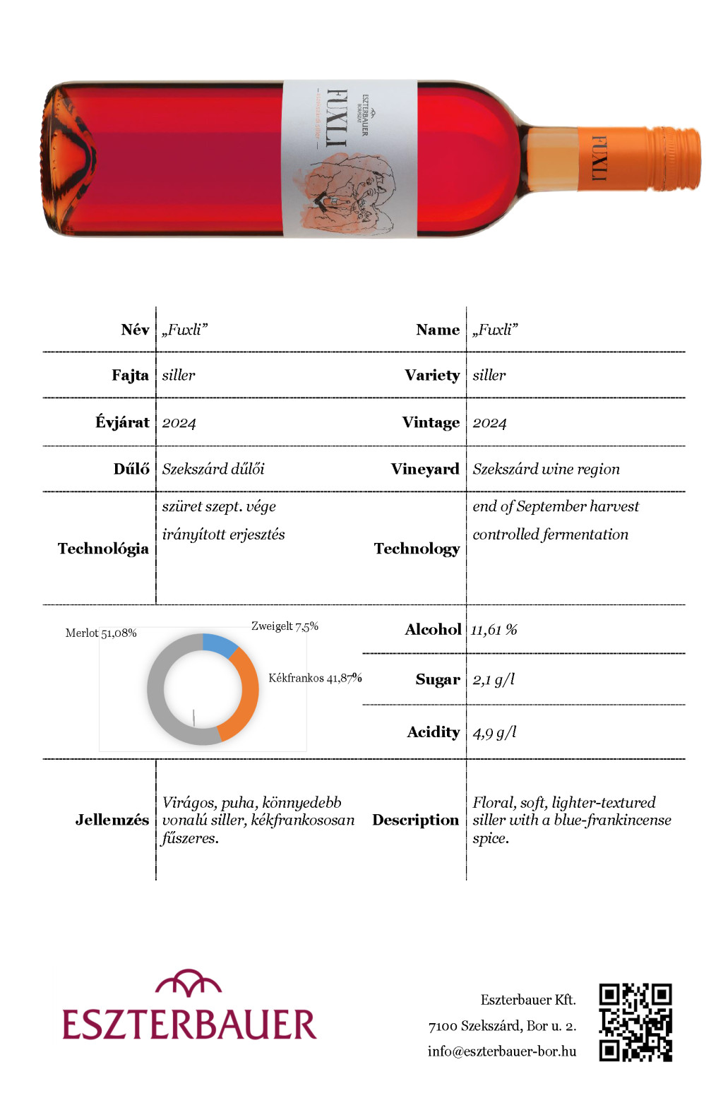 • „Fuxli” 2024 Siller: A Siller gazdag, gyümölcsös karaktere és kellemes savai kiválóan illeszkednek a hagyományos pörkölt ételekhez, valamint a sült húsokhoz. Ezzel a borral biztosan elvarázsolod a vendégeidet.