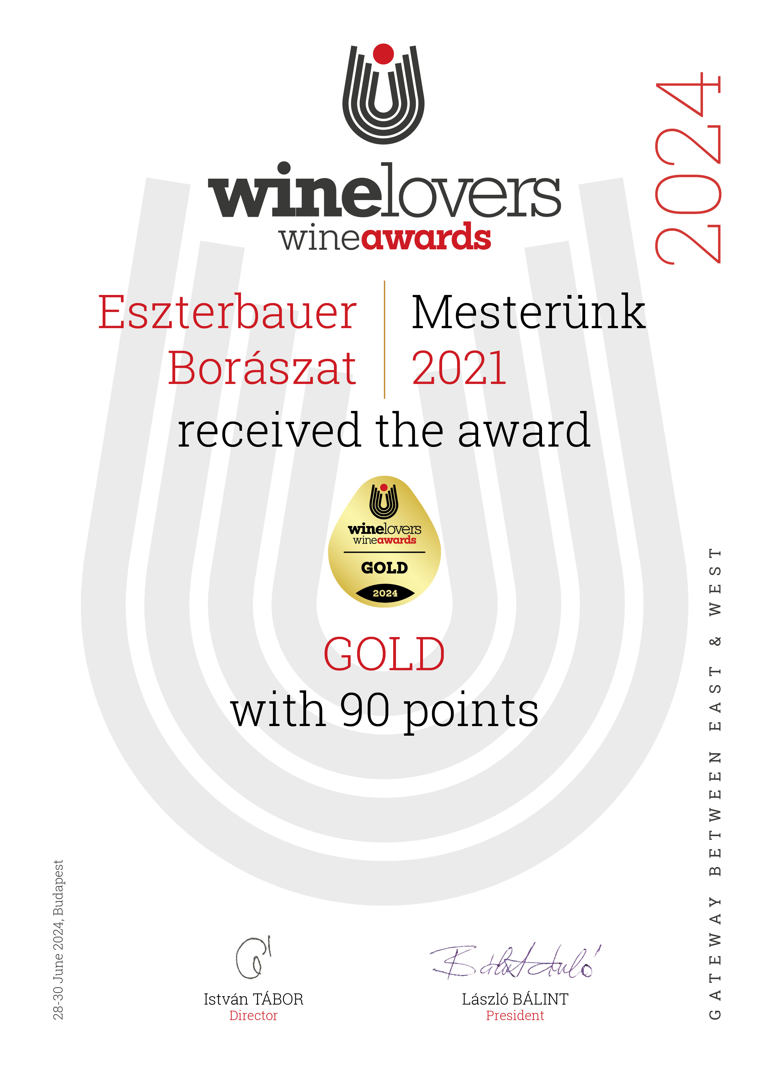 - Winelovers Wine Awards-arany minősítés